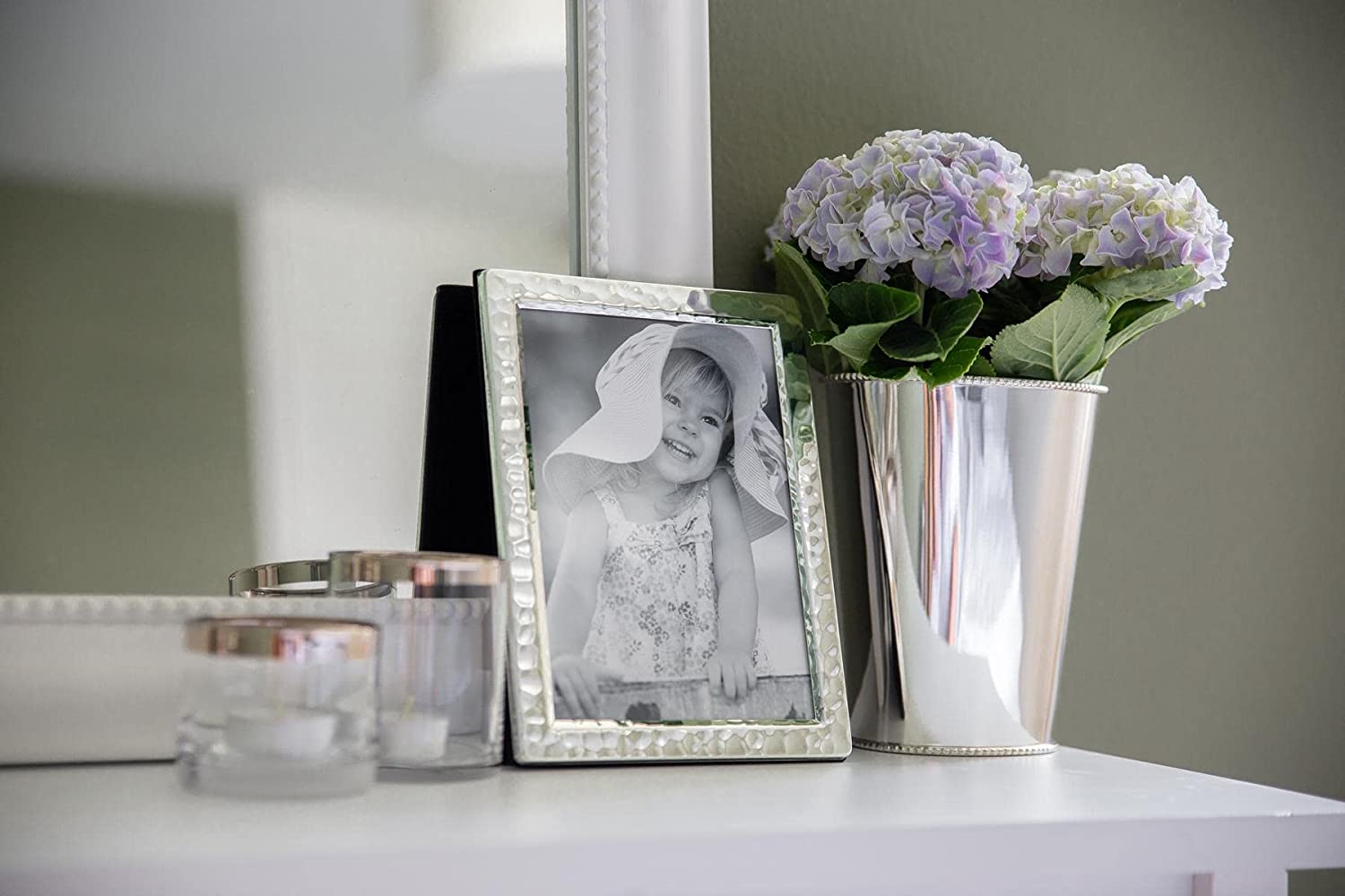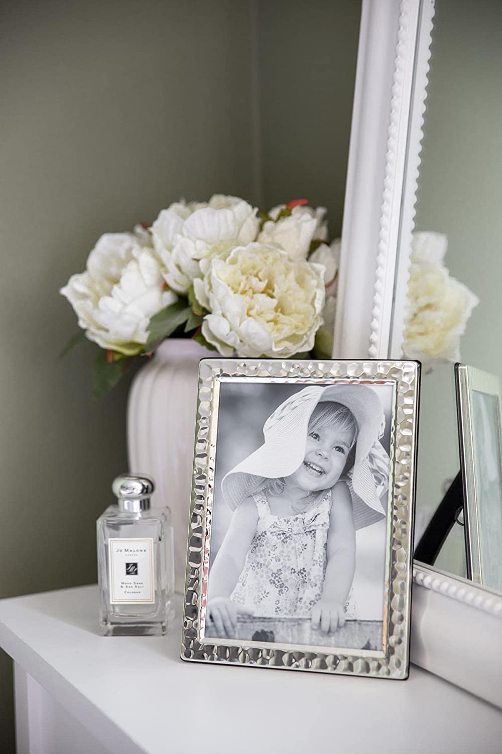 Entdecken Sie das edle 2er Set der EDZARD Bilderrahmen Pavia. Hergestellt von der renommierten Silberwarenmarke EDZARD seit 1975, bieten diese Rahmen eine solide und massive Verarbeitung in edler Optik. Der spezielle Anlaufschutz schützt den Rahmen vor Verfärbungen, wodurch eine einfache Pflege mit einem feuchten Tuch ausreicht. Dieser versilberte und gehämmerte Rahmen eignet sich besonders für besondere Anlässe wie Geburtstage, Kommunionen, Hochzeiten und Weihnachten. Der Samtrücken verleiht dem Rahmen eine besonders edle Note. Der Rahmen ist sowohl senkrecht als auch waagerecht aufstellbar und mit zwei Aufhängevorrichtungen für die Wand versehen.