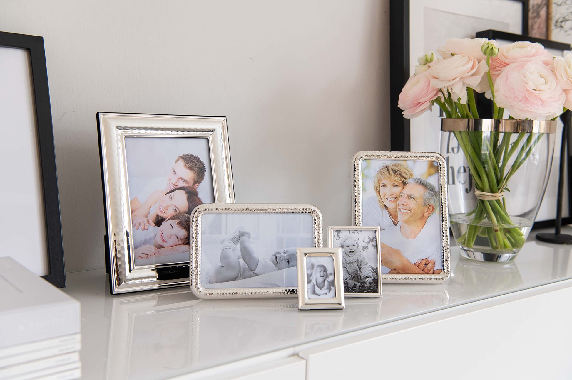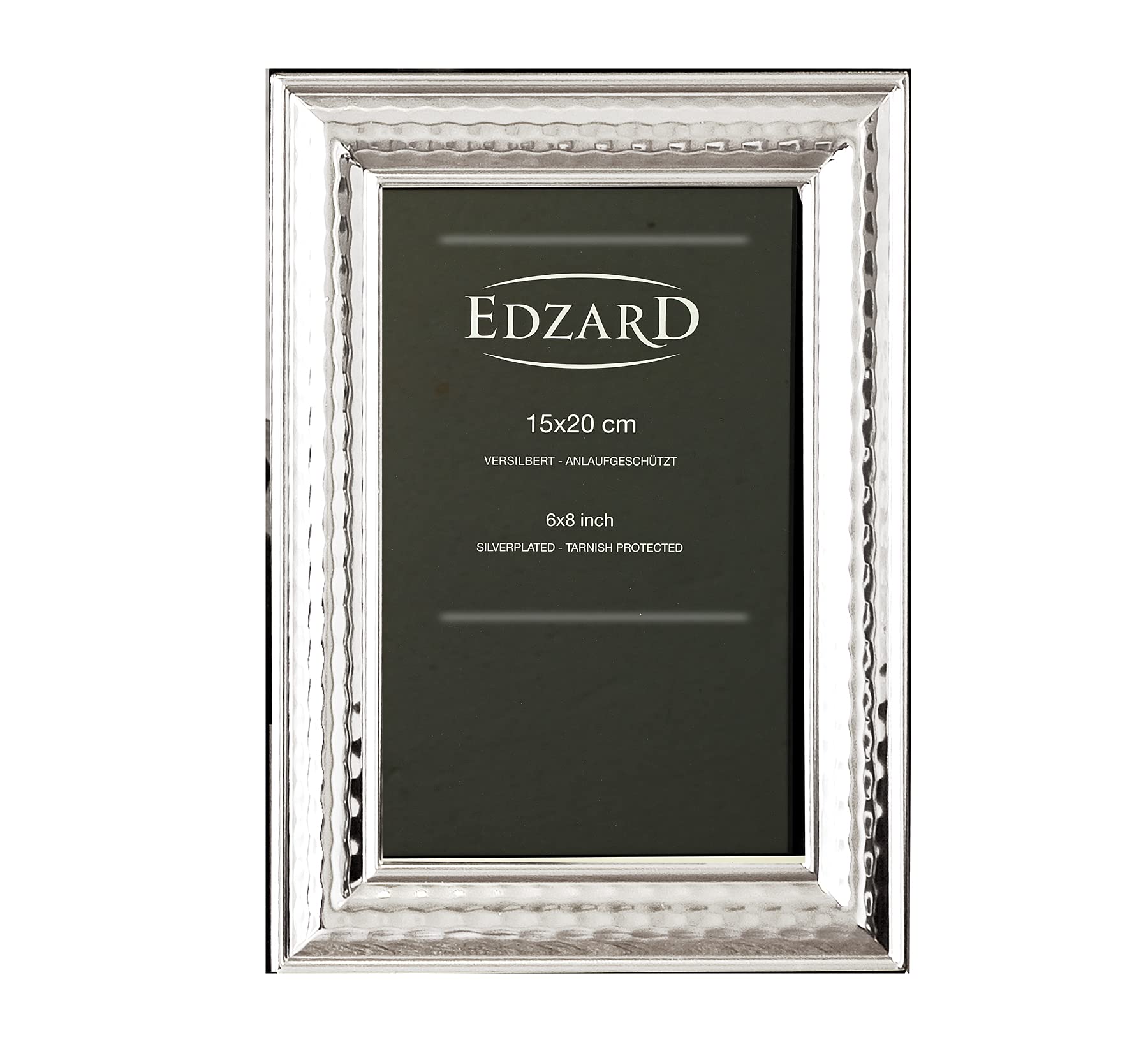 Der versilberte Bilderrahmen Urbino von EDZARD ist ein stilvoller Fotorahmen für jeden Anlass. Mit einer Fotogröße von 15x20cm eignet er sich ideal für Geburtstage, Hochzeiten, Weihnachten oder einfach als edle Ergänzung für Ihr Zuhause. Der hochglänzende Rahmen wird durch den speziellen Anlaufschutz von EDZARD dauerhaft glänzen, wodurch lästiges Polieren entfällt. Der Bilderrahmen ist sowohl aufstellbar als auch mit einer Aufhängevorrichtung für die Wand versehen und der Samtrücken verleiht ihm eine besonders edle Optik. Der Wechsel von Fotos ist durch die Easy-Switch-Funktion kinderleicht.
