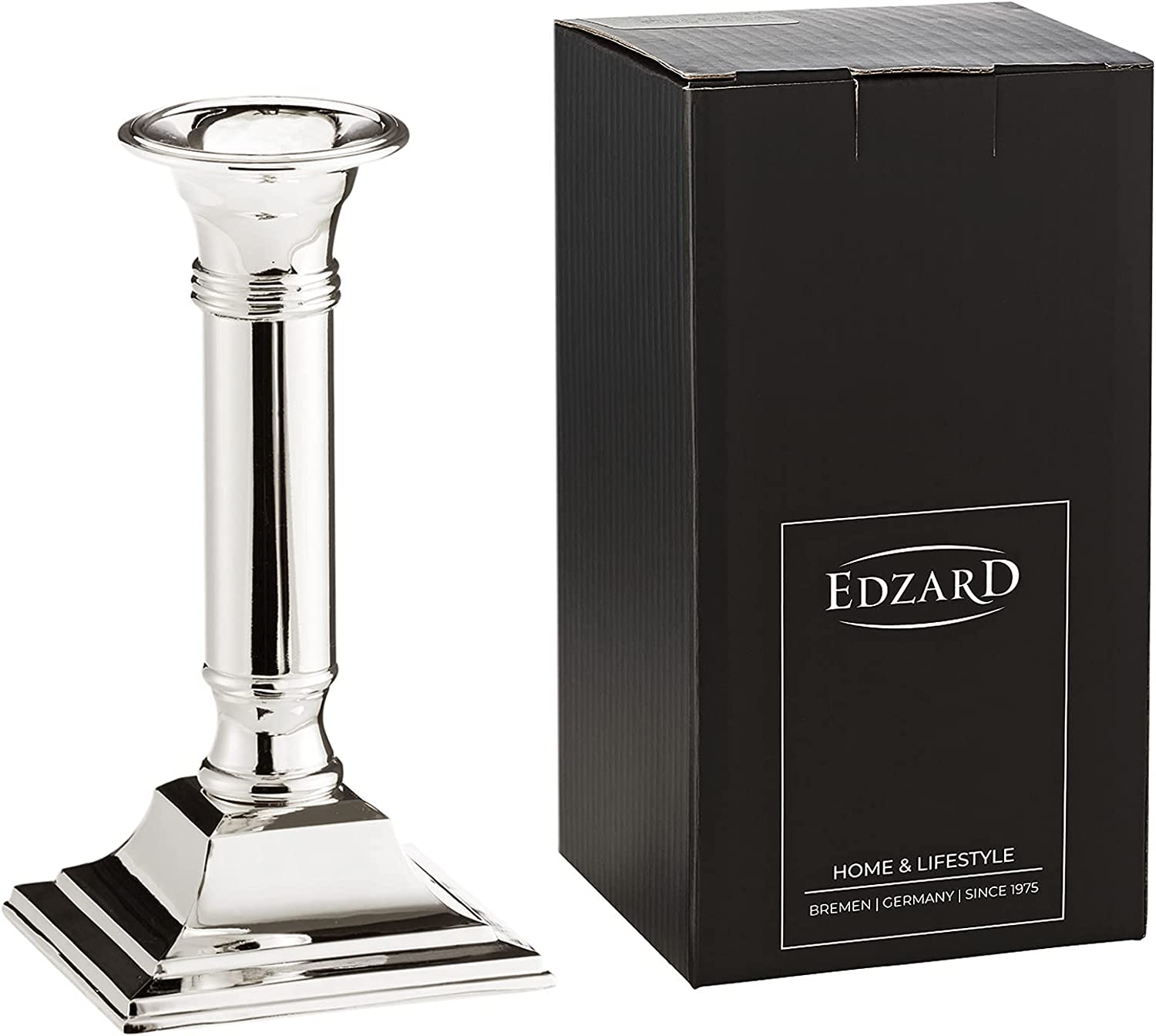Verleihen Sie Ihrem Zuhause mit dem zeitlosen und edlen EDZARD Kerzenleuchter Lincoln für Stabkerzen das gewisse Etwas. Das Bremer Familienunternehmen Edzard überzeugt seit 1975 mit stilvollen Accessoires von höchster Güte. Der Kerzenständer ist edel versilbert und mit hochwertigem Anlaufschutz versehen, um lästiges Silberpolieren zu vermeiden. Der Fuß aus feinstem Samt sorgt für einen kratzfreien Stand. Geeignet für handelsübliche Kerzen und mit einer Höhe von 15 cm ist der Kerzenleuchter Lincoln das ideale Must-Have für Ihre feierliche Tafel oder als stilvolle Dekoration im Alltag.