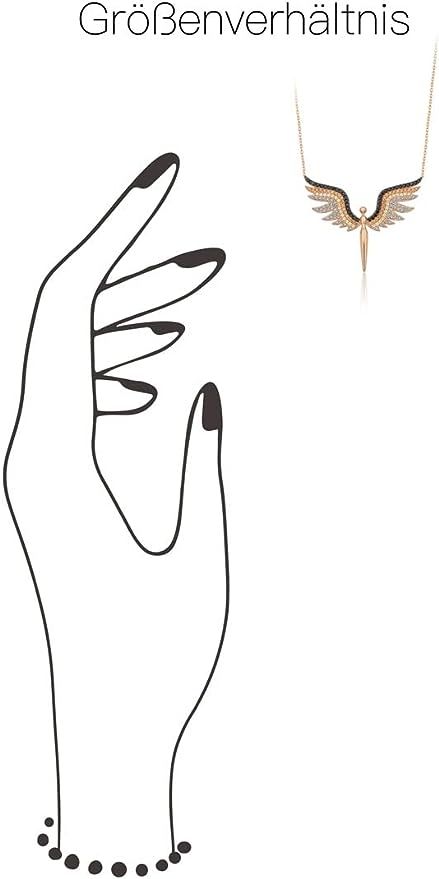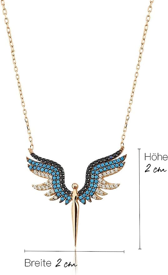 Der Engel-Anhänger wurde mit Liebe zum Detail gefertigt und strahlt einen zeitlosen Charme aus. Je nach Ihrem Stil können Sie zwischen Gelb- oder Roségold wählen, um Ihre Persönlichkeit zu unterstreichen. Die Halskette hat die perfekte Länge von 42 cm und schmeichelt jedem Hals.