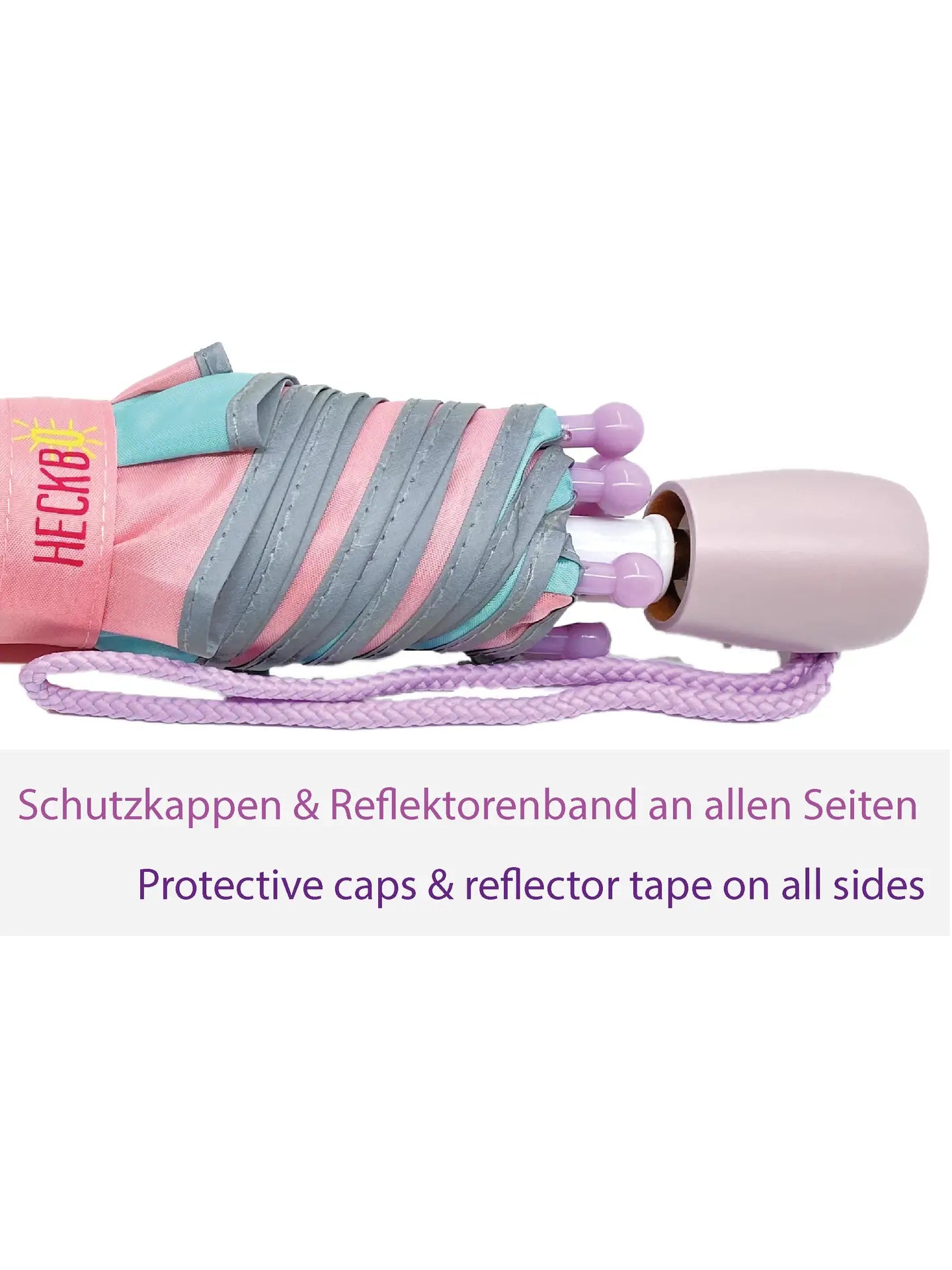 Der HECKBO Magic Faltregenschirm ist ein besonderes Accessoire für Kinder, da er bei Nässe die Farbe wechselt! Die weißen Sterne verwandeln sich in rosa Sterne, sobald der Regenschirm nass wird.