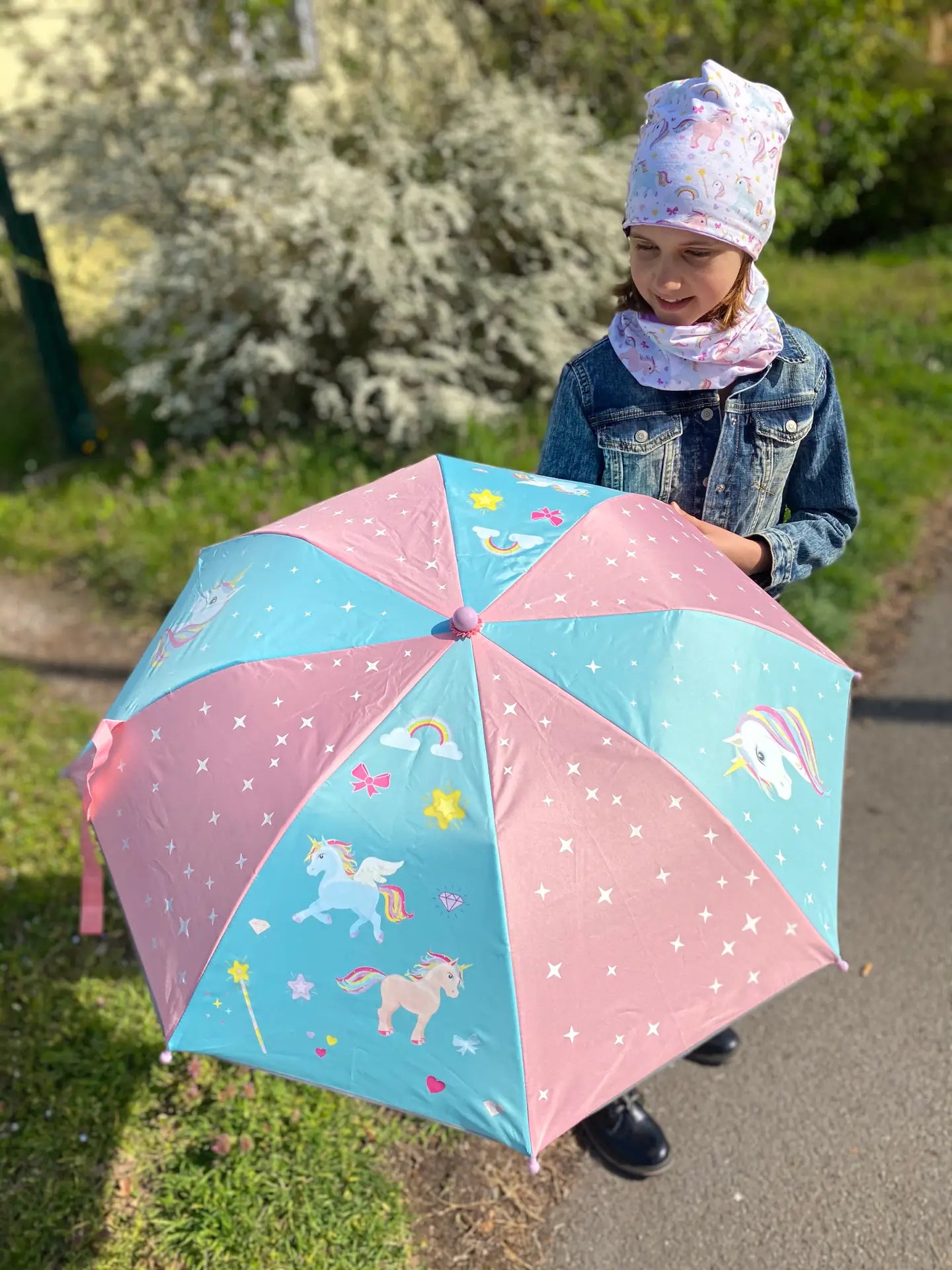 Das kinderfreundliche Öffnen und Schließen ermöglicht eine einfache Handhabung. Nach Gebrauch kann der zusammengefaltete Regenschirm problemlos im Schulranzen oder Turnbeutel verstaut werden. Zusammengefaltet hat er eine Länge von 32 cm, aufgeklappt 50 cm und einen Durchmesser von 76 cm.