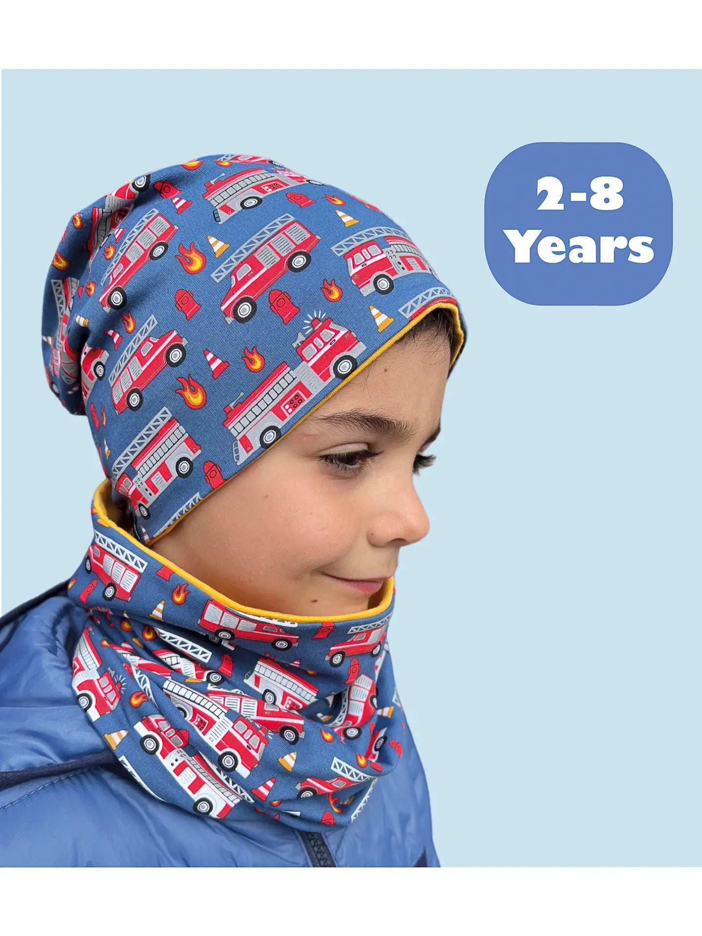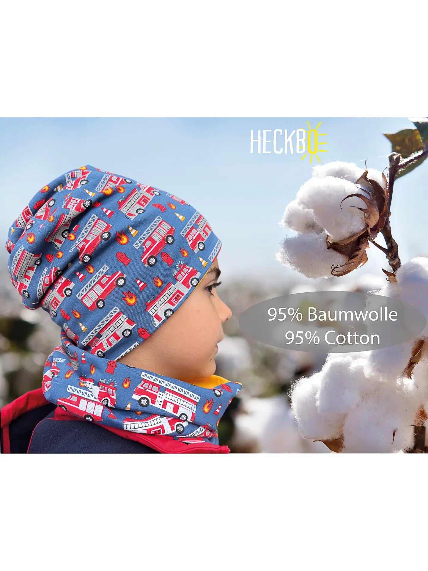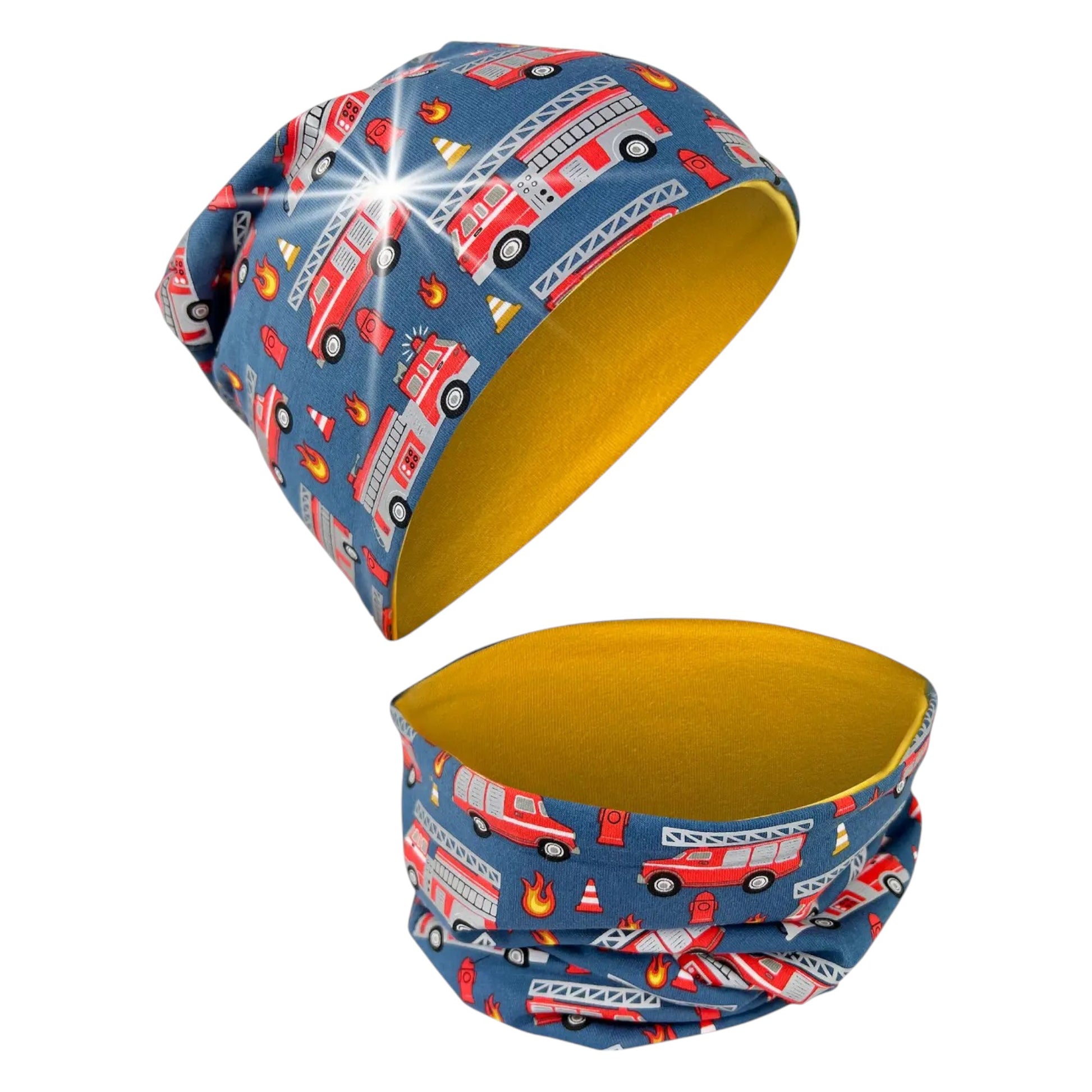 HECKBO Kinder Reflektor Mütze & Loop Schal - Feuerwehr