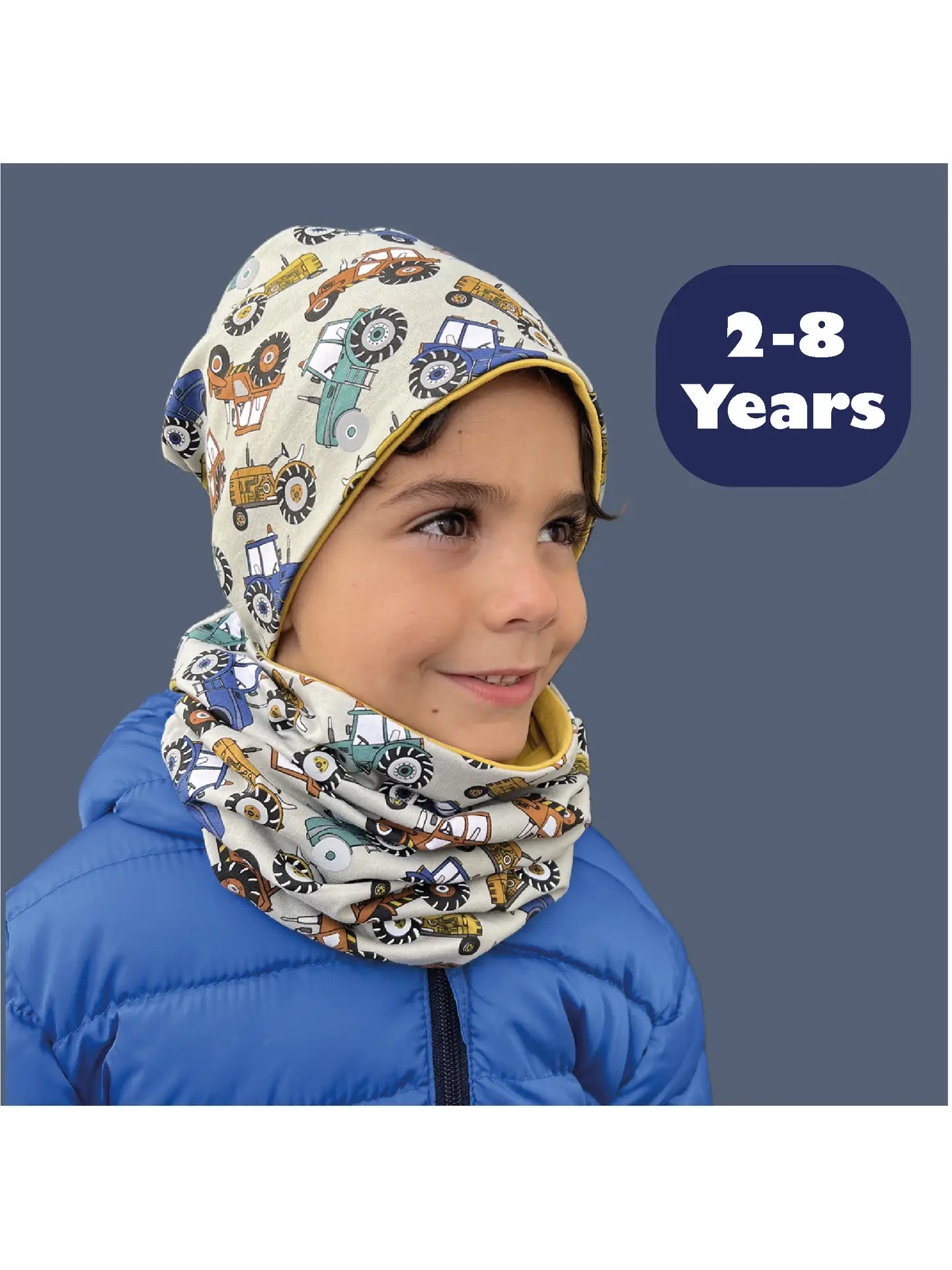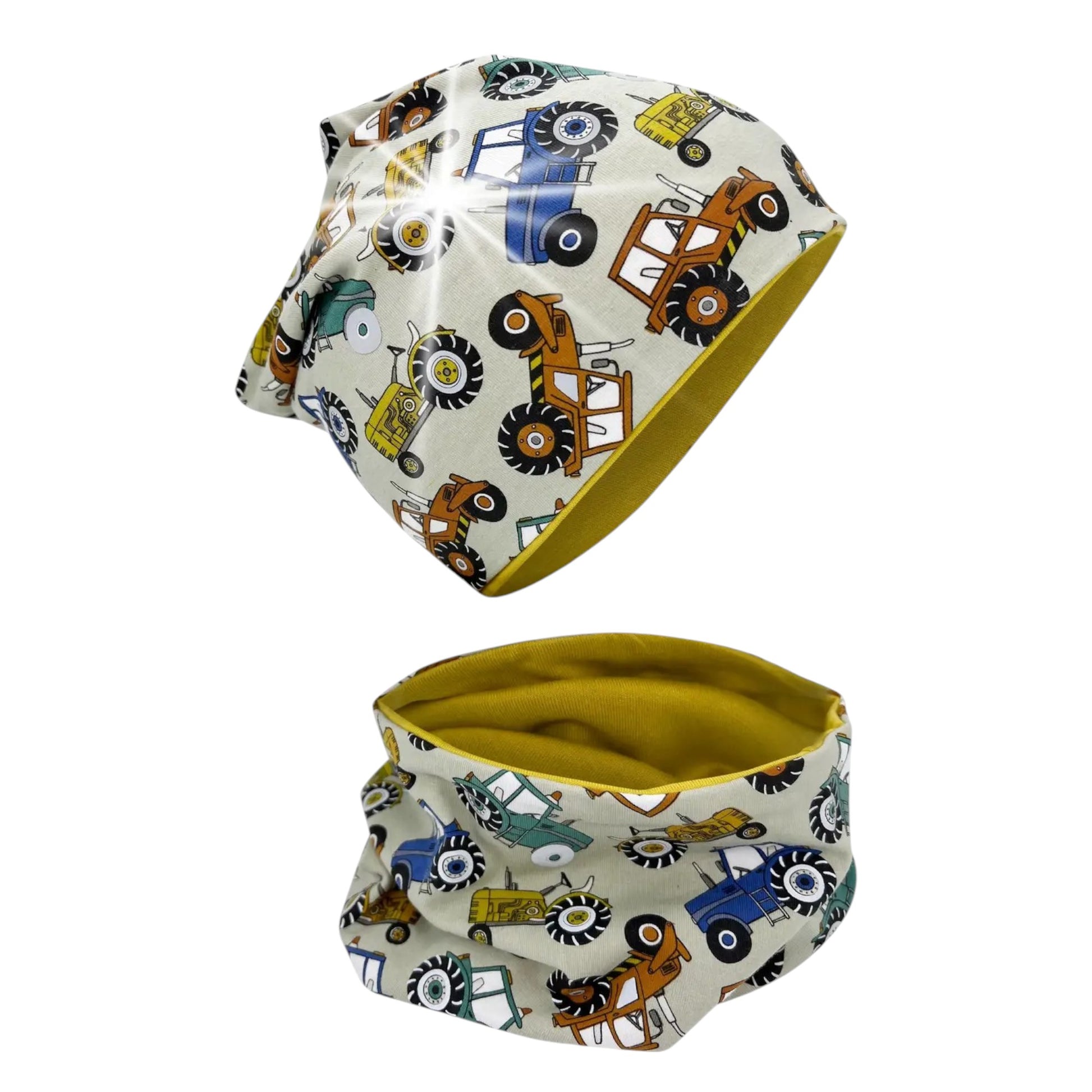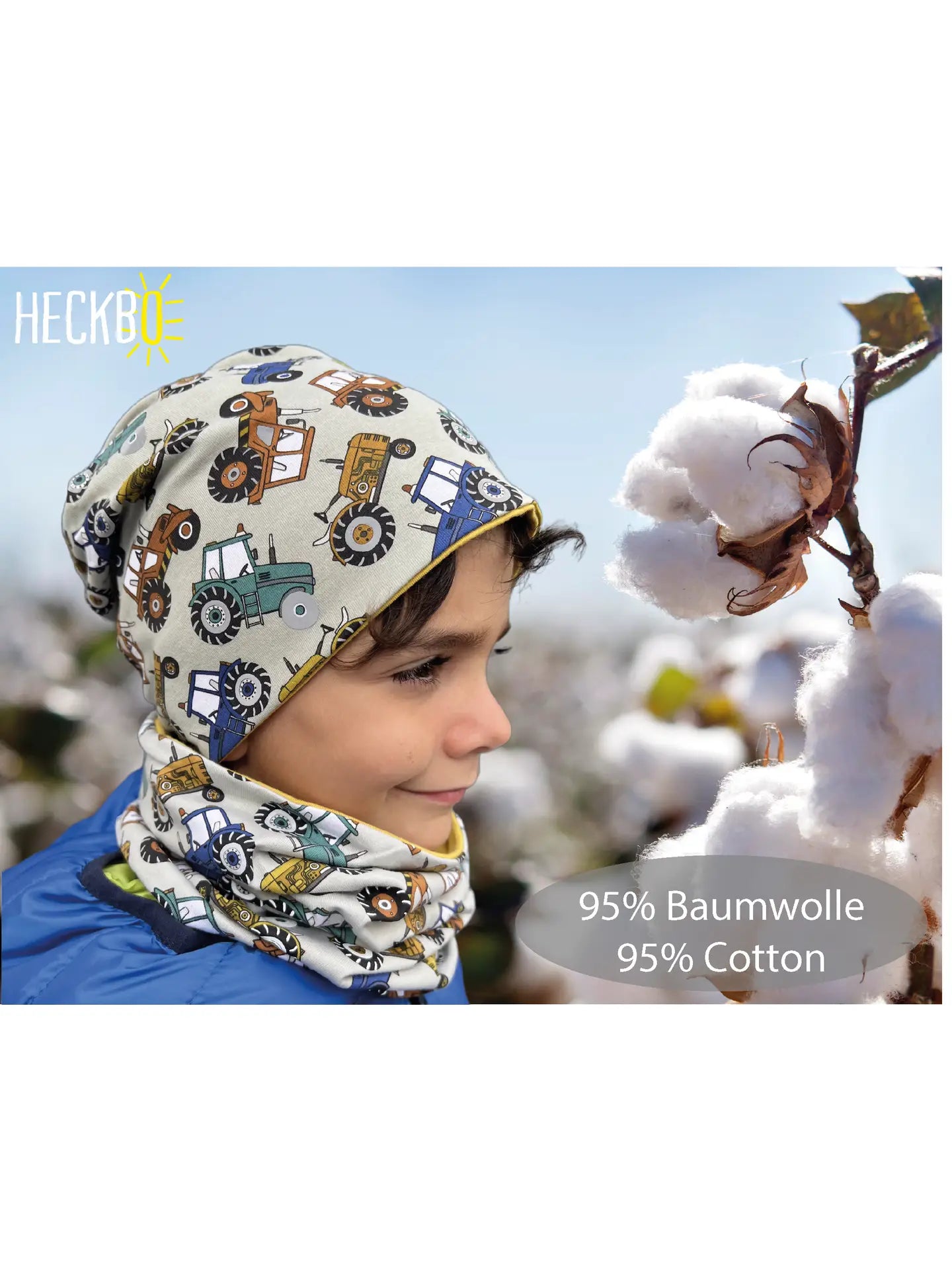 HECKBO Kinder Reflektor Mütze & Loop Schal - Traktor