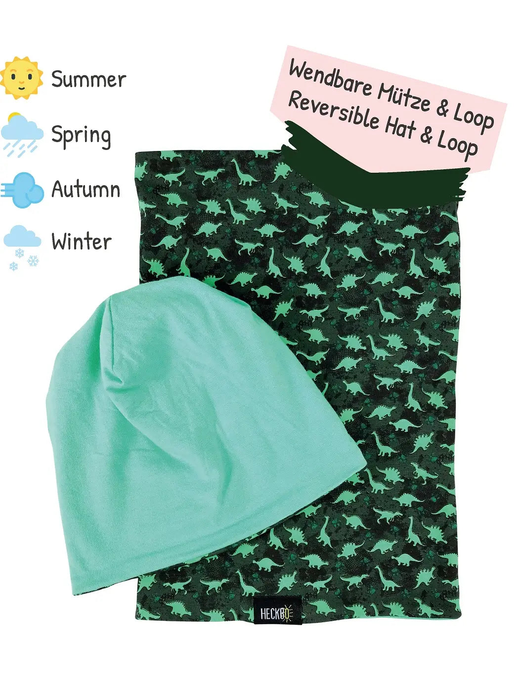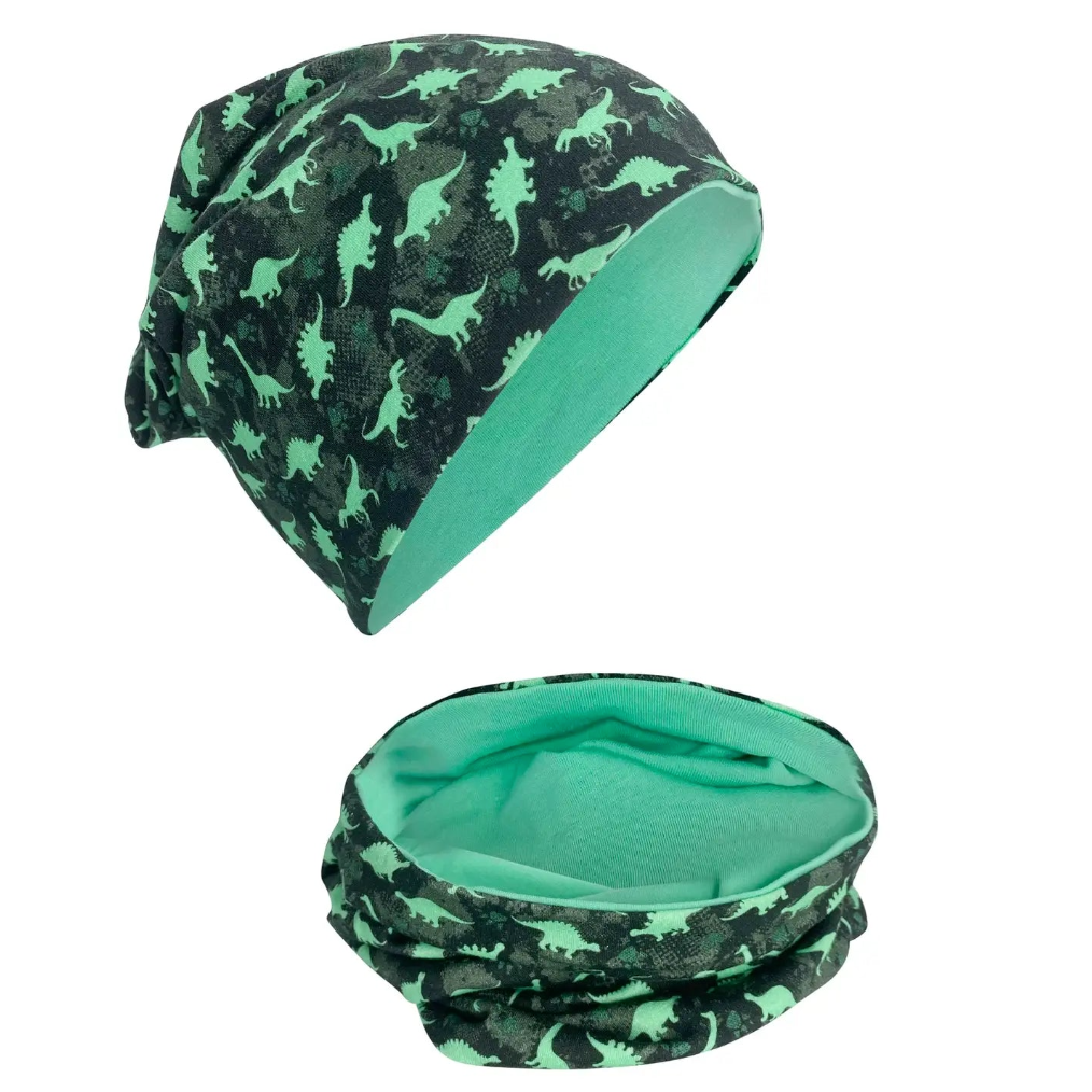 HECKBO Mütze & Schal Set Dinosaurier wendebar 2-8 Jahre