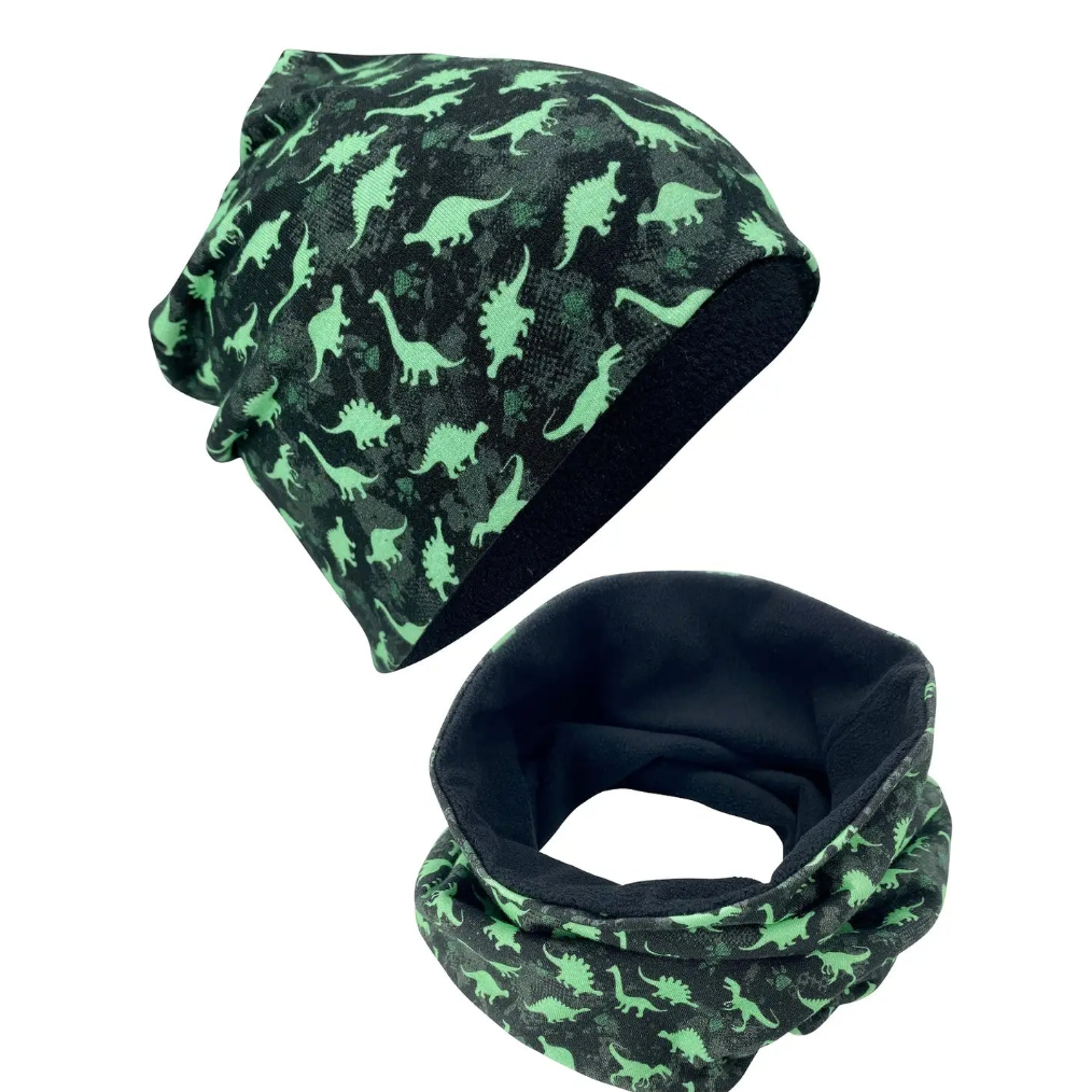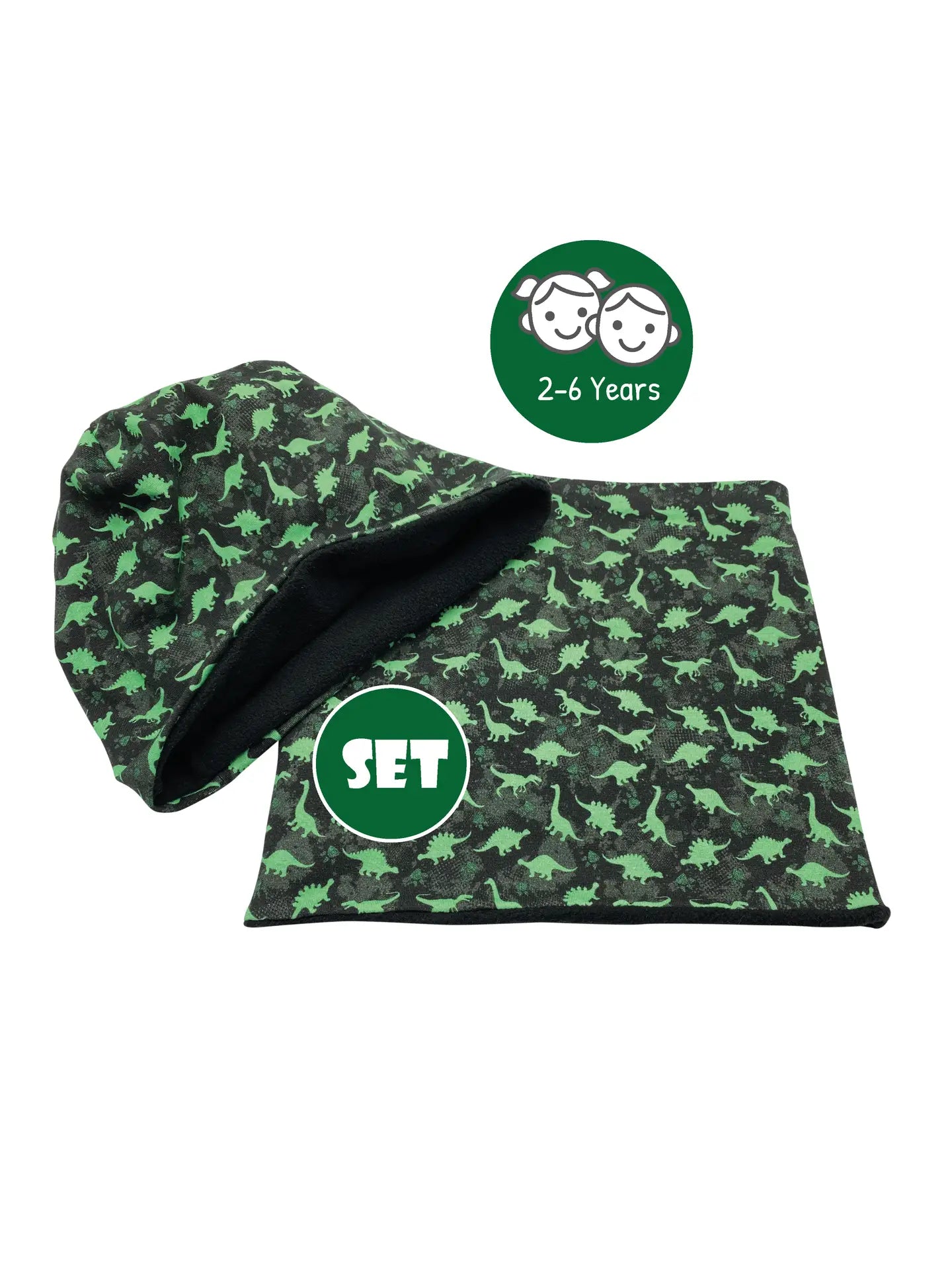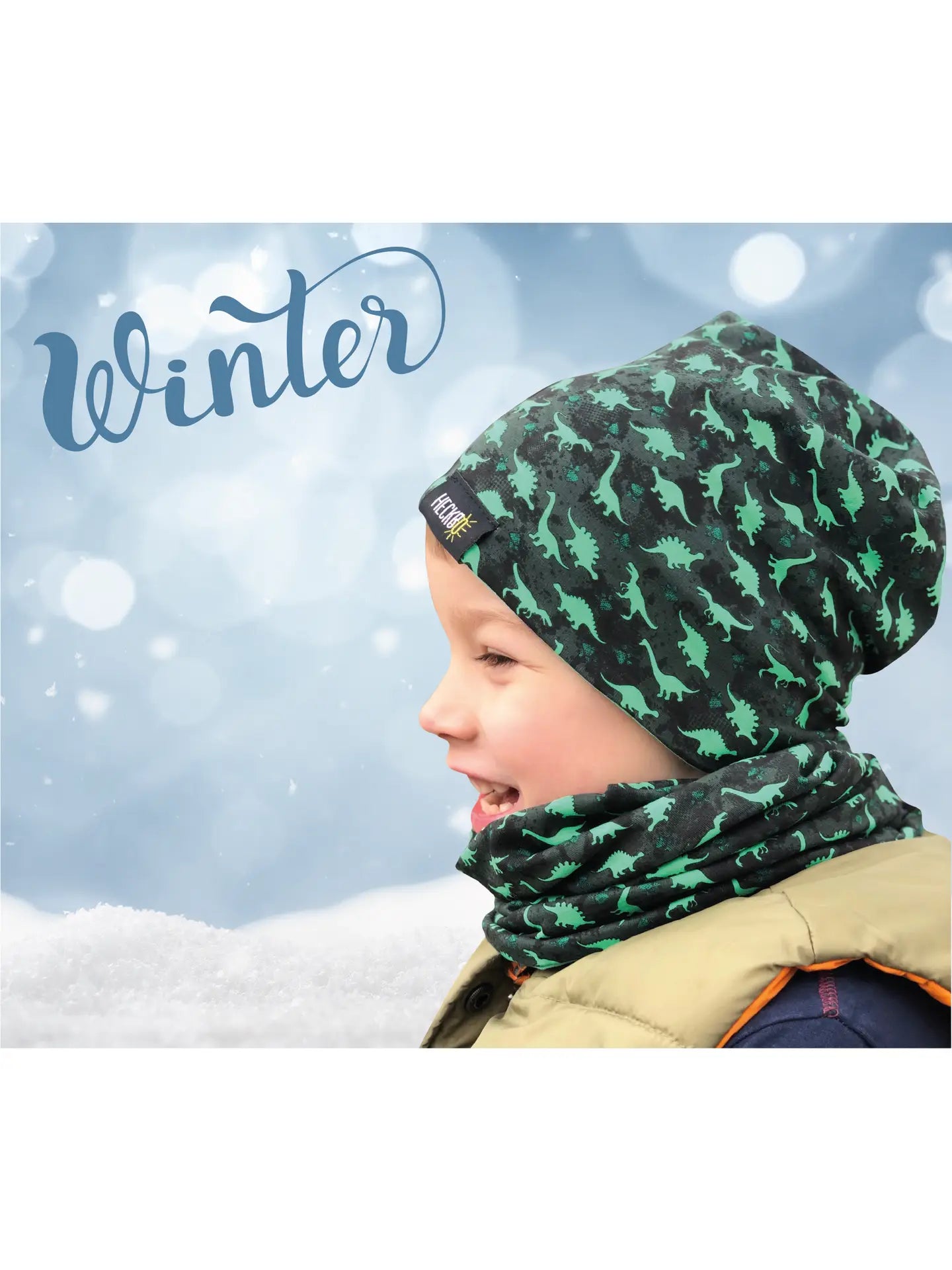 HECKBO Mütze & Schal Set Dinosaurier mit Vließ 2-6 Jahre