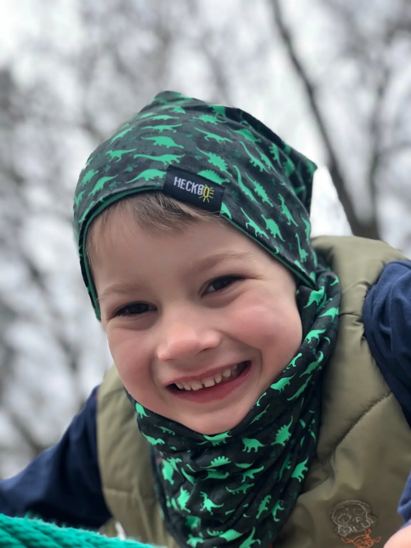 Das HECKBO Mütze & Schal Set Dino ist ein cooles und praktisches Winteraccessoire. Das Set besteht aus einer Wintermütze und einem Loop-Schal mit einem kindgerechten Motiv.