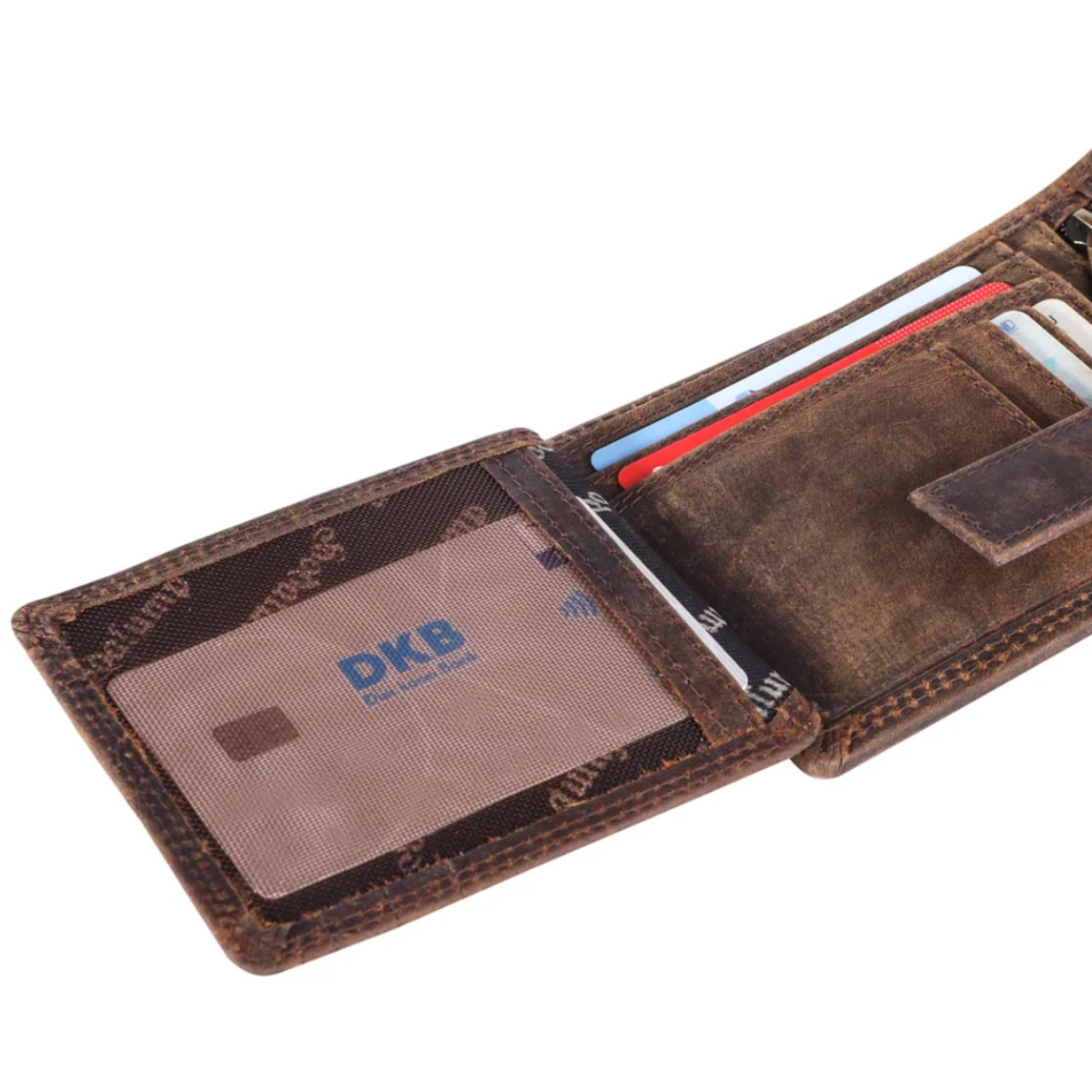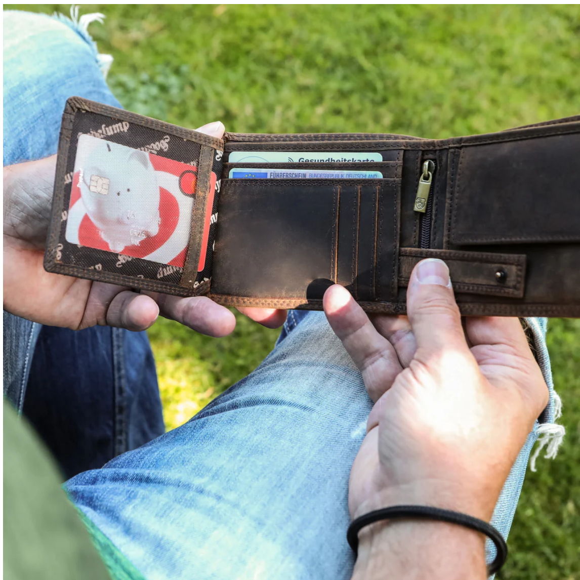 Die Hodalump Classic Geldbörse Bayern vereint traditionelles Design mit hochwertiger Verarbeitung. Hergestellt aus echtem, naturbelassenem Büffelleder, bietet sie Langlebigkeit und ein edles Erscheinungsbild. Das geprägte Bayernwappen auf der Vorderseite unterstreicht ihren einzigartigen Charakter. Mit 12 Kartenfächern, einem geräumigen Geldscheinfach und einem praktischen Münzfach sorgt sie für optimale Organisation. Der integrierte RFID-Schutz schützt zuverlässig vor Datenklau. Dank robuster Doppelnaht-Verarbeitung ist sie besonders stabil und ein idealer Begleiter für den Alltag. Die Maße liegen bei 12 x 9,5 x 2cm