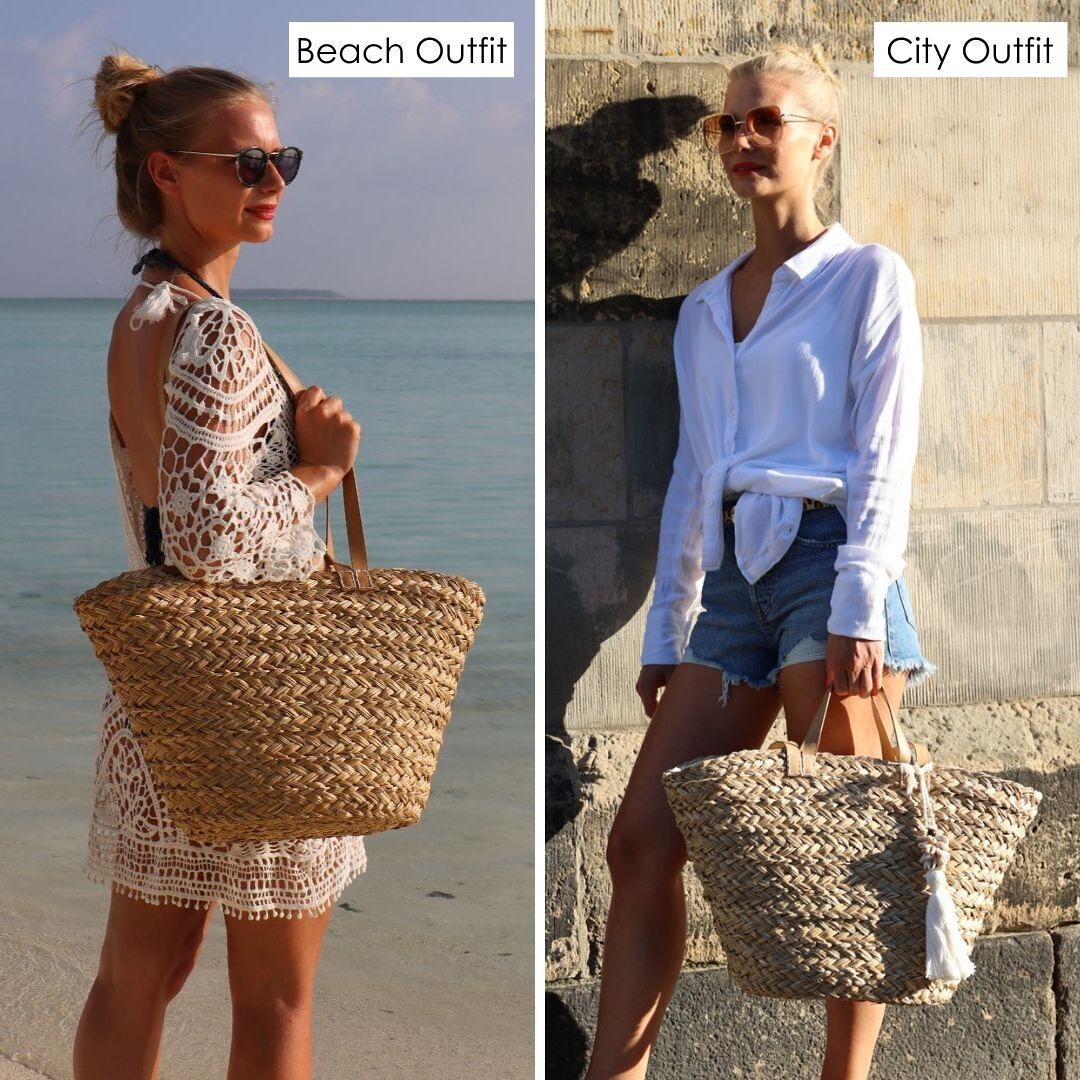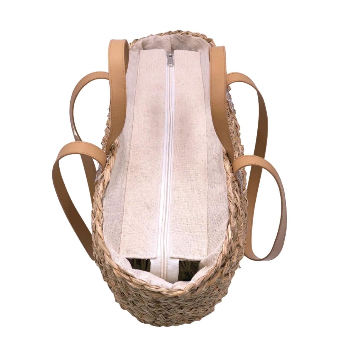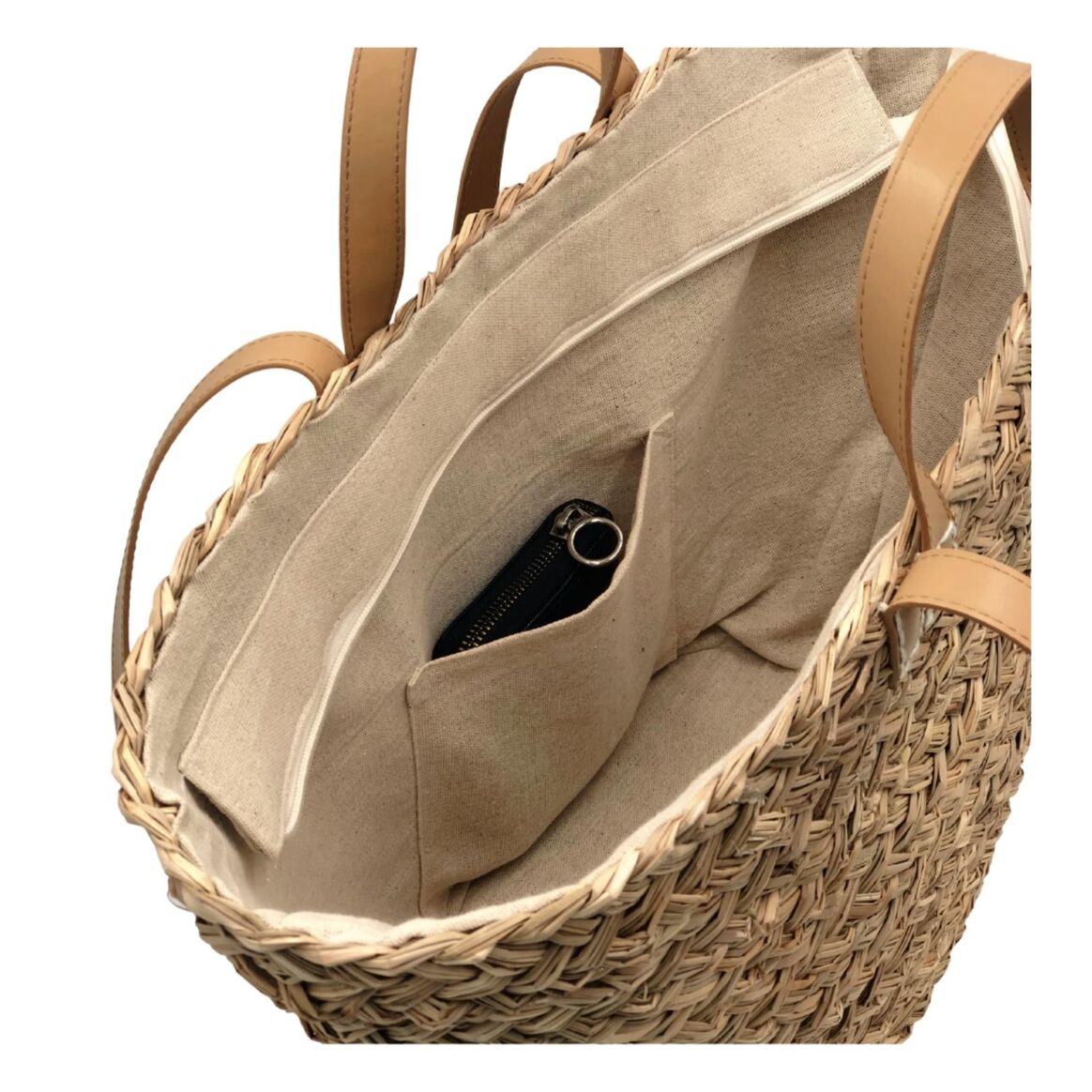 Die Korbtasche "Palma" ist der perfekte Begleiter für den Sommer! Hergestellt aus 100% natürlichem Seegras, vereint sie Stil und Funktionalität. Mit ihrem großzügigen Stauraum, einem Reißverschluss und einer praktischen Innentasche für Handy und Schlüssel bietet sie alles, was du für einen Tag am Strand brauchst.