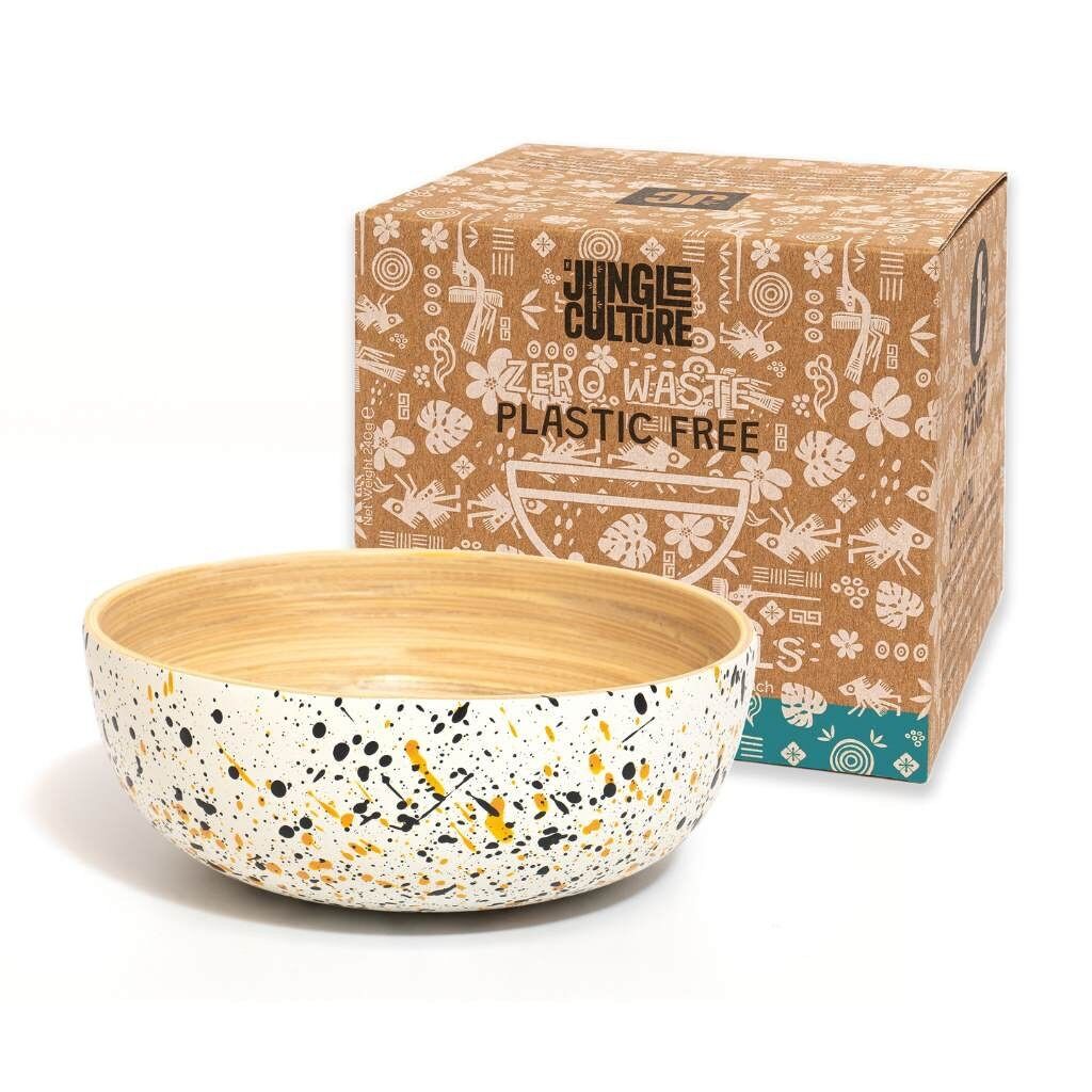 Verleihen Sie Ihrem Tisch eine natürliche Note mit der Bambus-Servierschale von Jungle Culture. Aus hochwertigem vietnamesischem Bio-Bambus handgefertigt, bietet diese 18 cm große Schale ein minimalistisches Terrazzo-Design. Ideal zum Servieren von Speisen, als Dekoration oder für kleine Aufbewahrungszwecke. Nachhaltig, ethisch produziert und ein Unikat in jedem Detail.