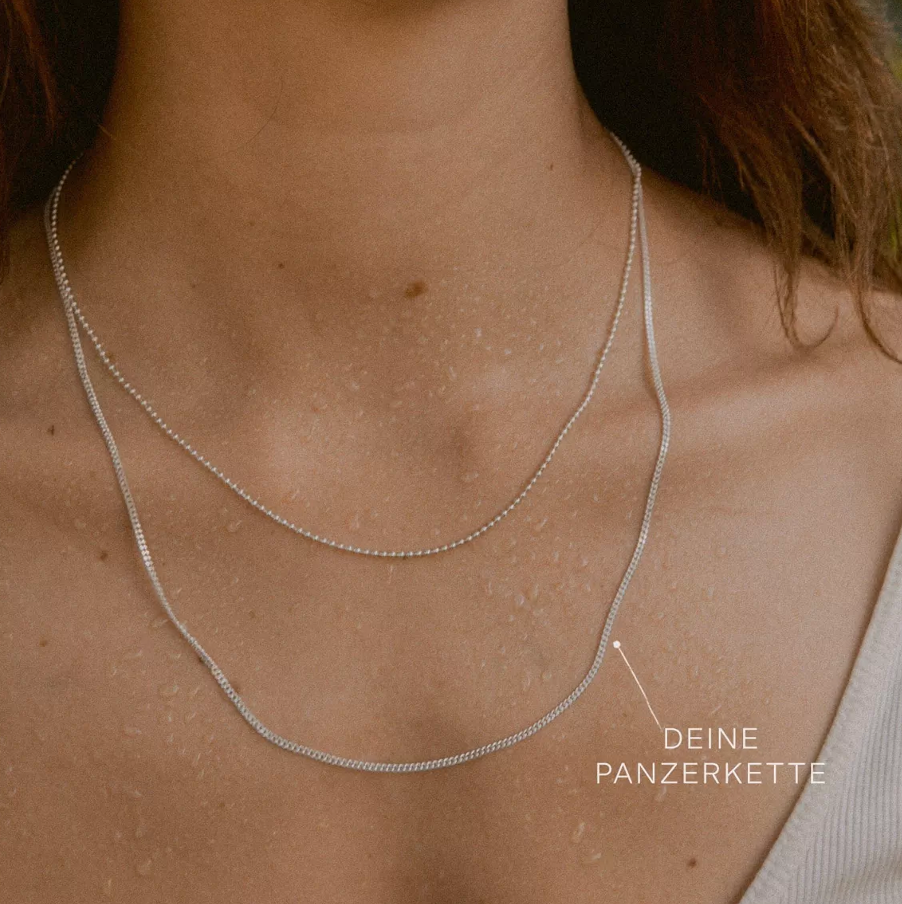 Die SINCERE Panzerkette vereint Schlichtheit und Robustheit. Ihr kratzfestes Design strahlt dezente Schönheit aus und ist unempfindlich im Alltag. Der zuverlässige Verschluss gewährleistet sicheren Halt.
