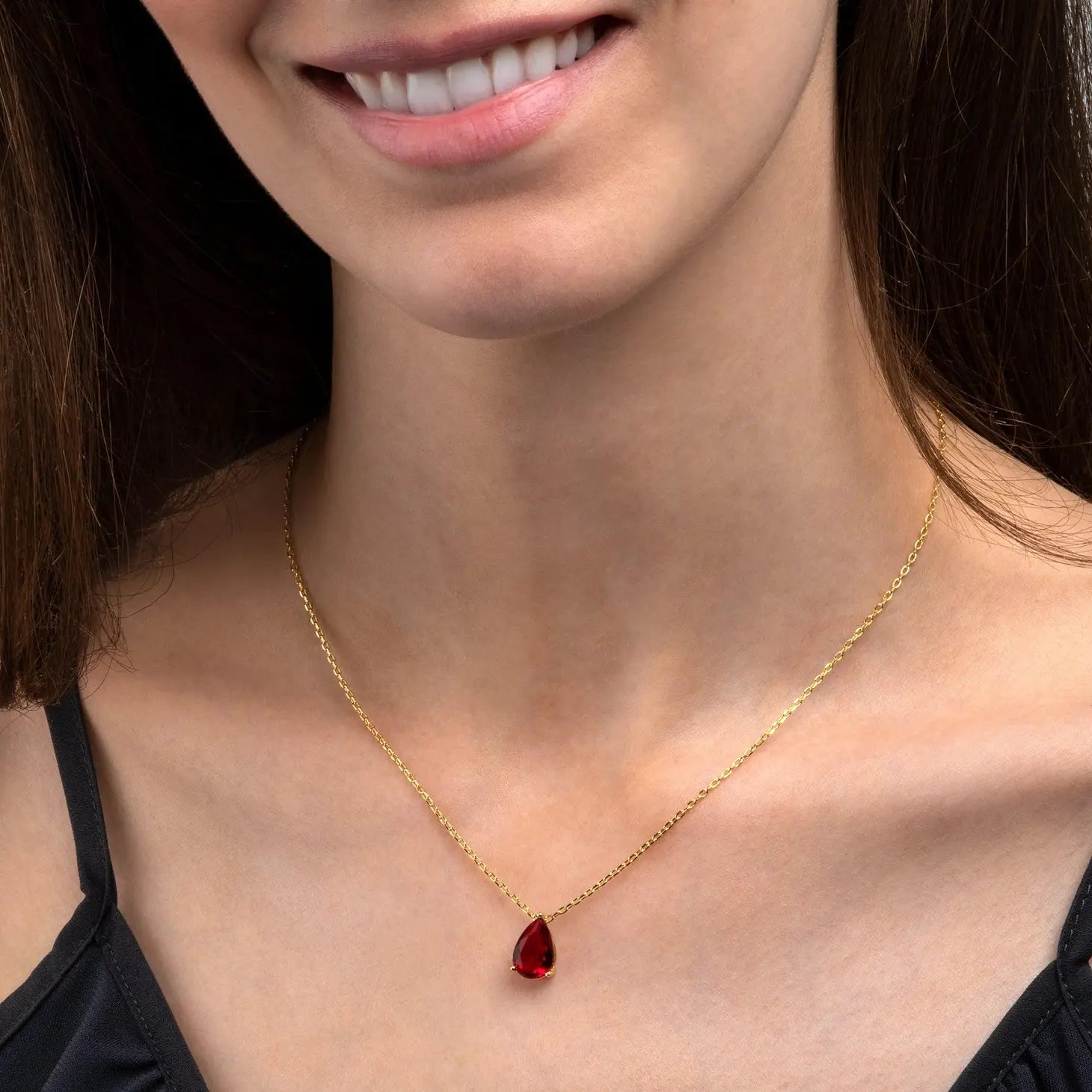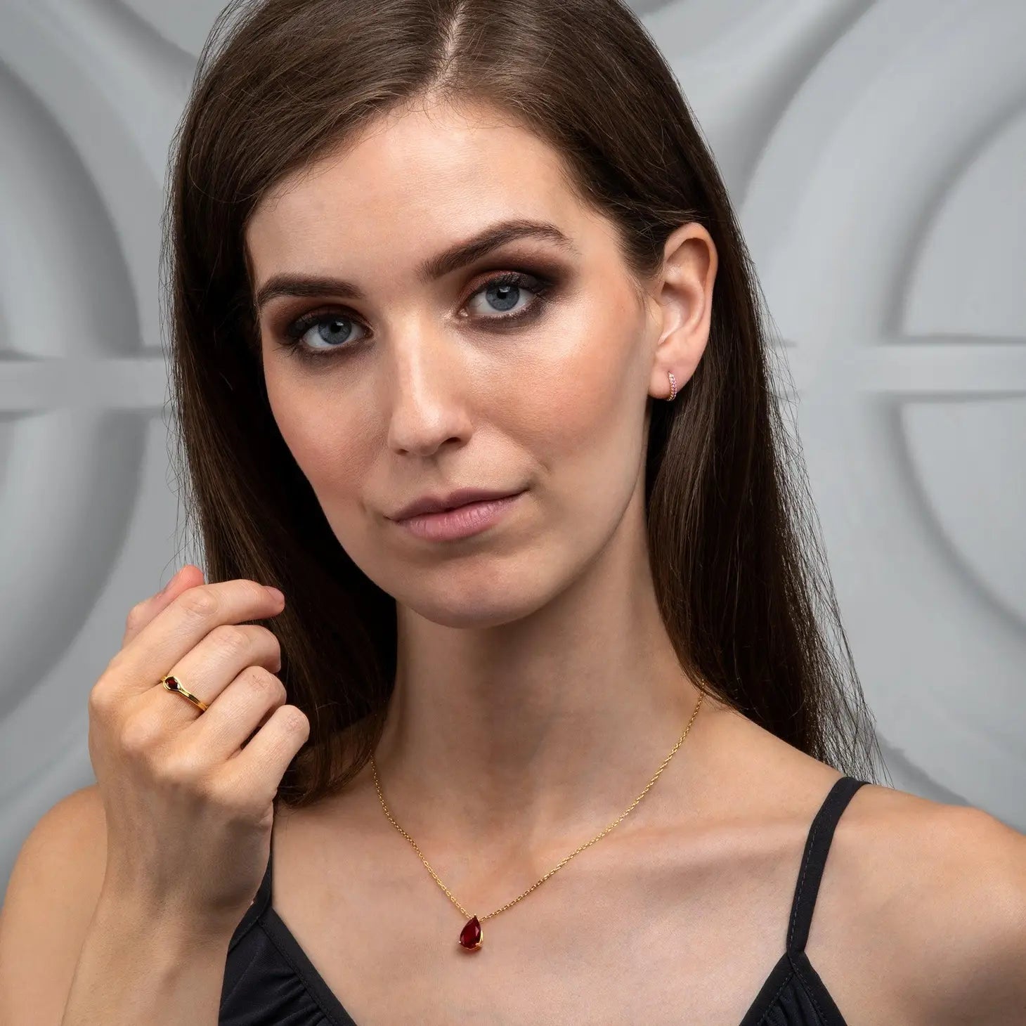 Namana Vergoldete Halskette mit rotem Birnenanhänger für Damen