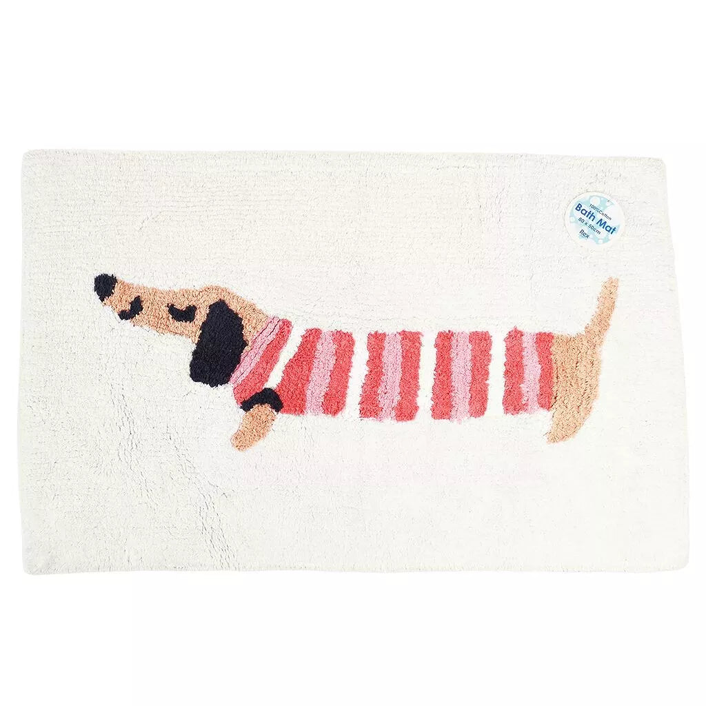 Die getuftete Badematte „Sausage Dog“ von Rex London ist ein stilvolles und funktionales Highlight für jedes Badezimmer. Hergestellt aus 100 % weicher Baumwolle, bietet sie eine luxuriöse Haptik und eine starke Wasserabsorption. Das charmante Design zeigt einen Dackel im gestreiften Pullover auf einer weißen Fläche – ein verspielter Akzent, der Ihr Badezimmer verschönert. Mit einer Größe von ca. 80 x 50 cm ist diese Matte ideal für den täglichen Gebrauch. Maschinenwaschbar bei 30 °C für einfache Pflege.