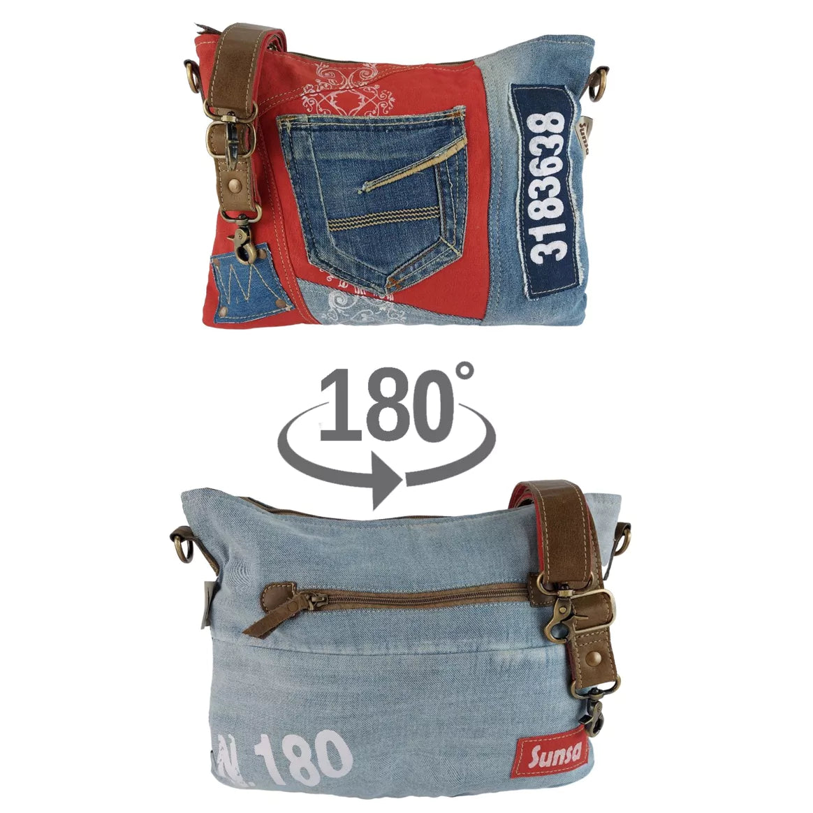 Die Sunsa Recycelte Jeanstasche ist ein hervorragendes Beispiel für unser Engagement für Nachhaltigkeit und Umweltschutz. Diese stilvolle Umhängetasche besteht aus einer raffinierten Kombination von robustem Canvas, recycelten Jeans und echtem Leder.