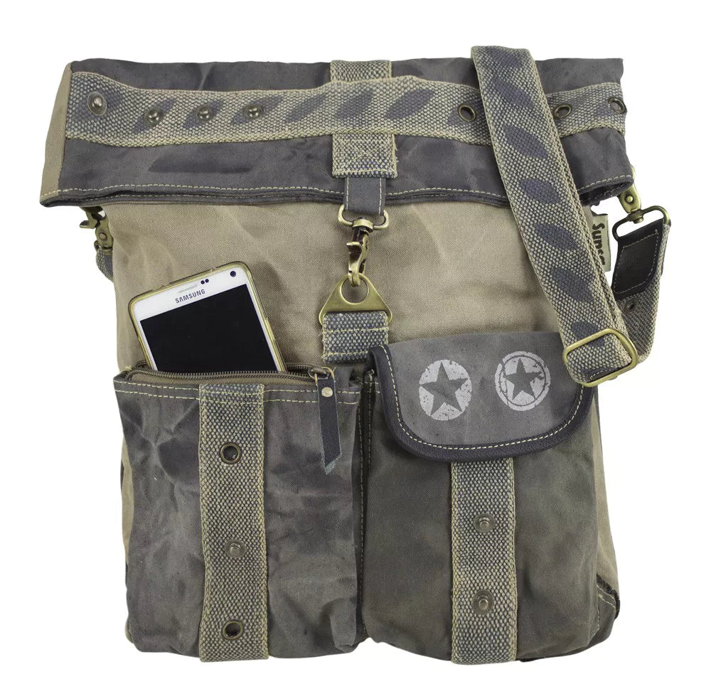 Mit der Sunsa Upcycling Canvas Umhängetasche wählen Sie nicht nur Stil und Funktionalität, sondern setzen auch ein Zeichen für Nachhaltigkeit und Umweltschutz.