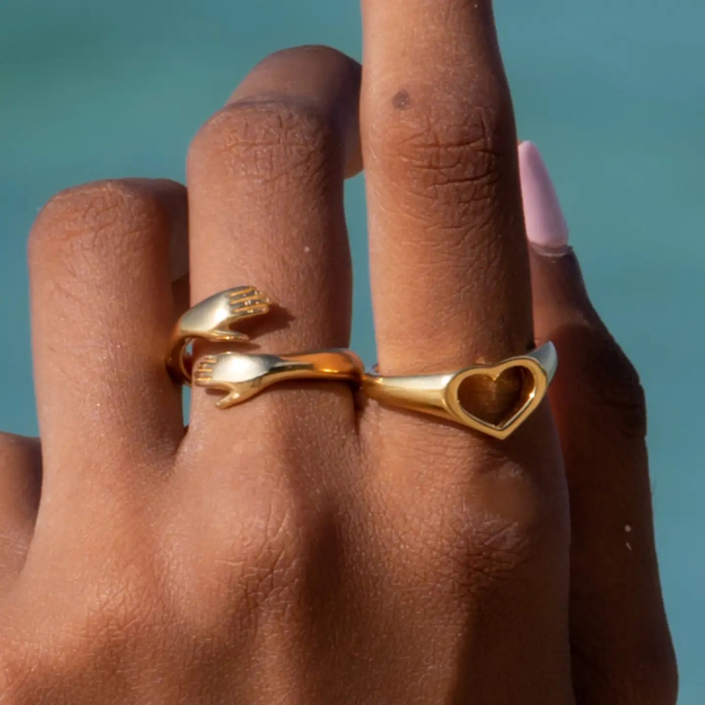 Schenken Sie jemandem eine ewige Umarmung mit unserem atemberaubenden Umarmungsring! Dieser Handumarmungsring ist das perfekte Symbol für Freundschaft und ewige Liebe. Hergestellt aus recyceltem 925er Sterlingsilber und beschichtet mit 18 Karat Gold, besticht er durch seinen hochwertigen Glanz und seine exquisite Verarbeitung.
