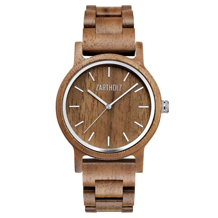 ZARTHOLZ Unisex Holz-Armbanduhr Klassik aus Walnussholz